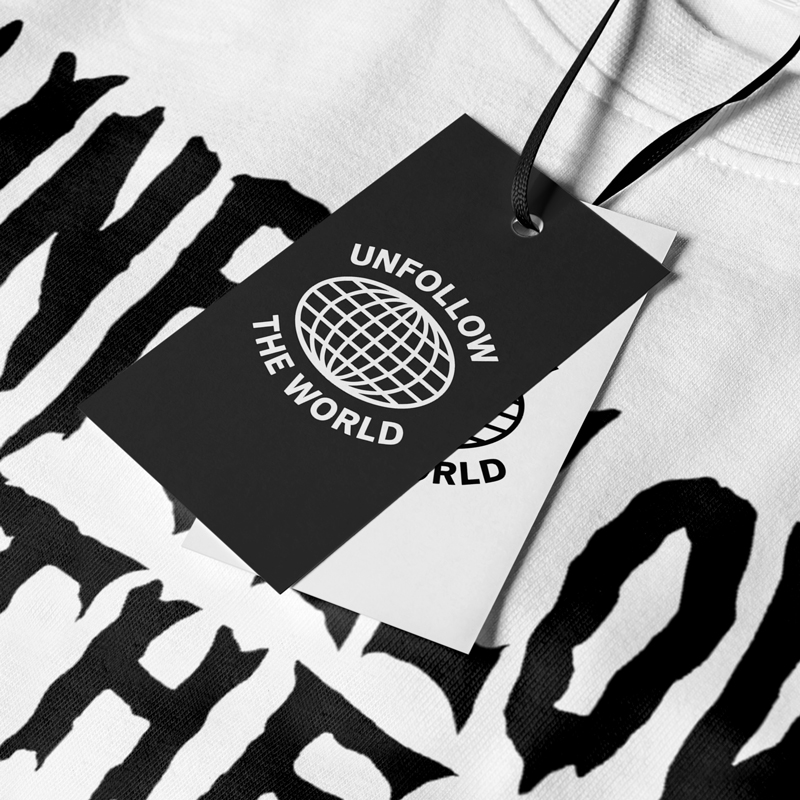 “Unfollow The World – Classic” on a white tee. Get yours today!